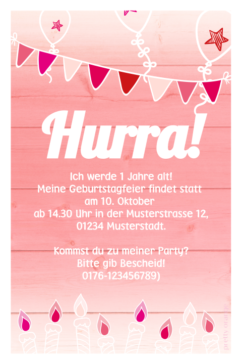 Pinke Einladungskarte Zum 1 Geburtstag