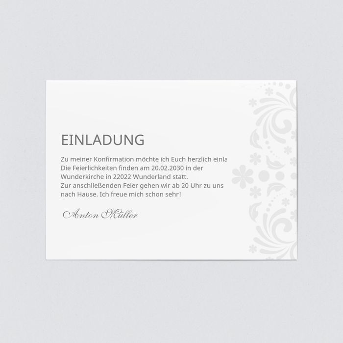 Konfirmation einladung text tipps. Eine ausführliche Einladung zur Konfirmation. Für Einladungskarten zur Konfirmation. Sollte Ihnen die Textvorlage der Einladung zur Konfi nicht zusagen haben wir Ihnen hier eine Auswahl an Texten für Konfirmationseinladungen.
