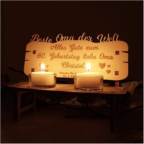 Oma Geburtstagsgeschenk Teelichthalter Personalisiert Mit Namen I Holz Geschenke Von Enkel Zum Geburtstag Amazon De Kuche Haushalt